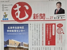 【市政報告「む新聞」vol.27】 <vol.27 主な内容> P1 コラム 「広島市北部地区学校給食センター」稼働 →「広島市北部地区学校給食センター」が今年1月7日に稼働しました。安佐北区...