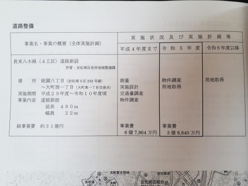・2023年度実施計画→物件調査、用地取得、事業費3億9840万円