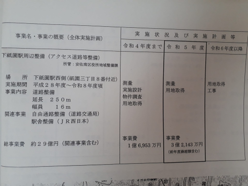 〇JR下祗園駅周辺整備(アクセス道路等整備)
