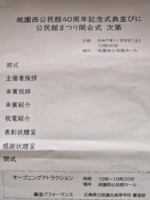 祇園西公民館まつりの式典次第