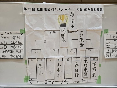 第62回祇園地区PTAバレーボール大会のトーナメント表