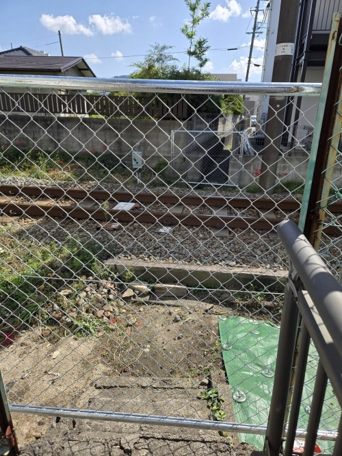フェンスで封鎖された”勝手踏切”(広島市安佐南区祇園で)